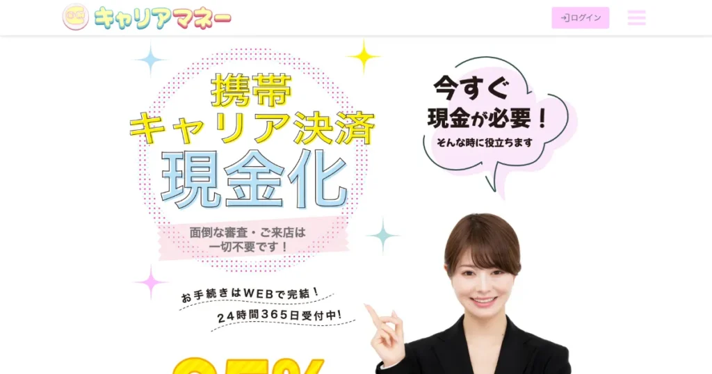 即日で現金が欲しい場合には、最短5〜15分での現金化が可能な点がもっとも大きな強みの「キャリアペイ」を利用しましょう。